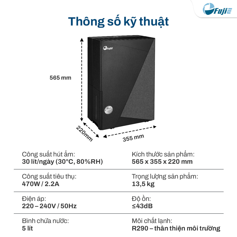 Công suất hút ẩm: 30 lít/ngày (30°C, 80%)