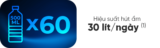 Công suất hút ẩm: 30°C/80%RH (30L/ngày) | 26.7°C/60%RH (18.5L/ngày)