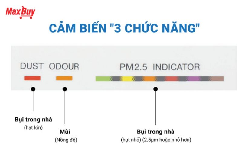 Máy được trang bị bộ cảm biến độ nhạy cao có khả năng phát hiện bụi thường, bụi mịn PM2.5 và mùi. Dữ liệu từ cảm biến được dùng để tự động điều chỉnh tốc độ quạt, đảm bảo cân bằng giữa hiệu quả làm sạch và tiết kiệm năng lượng. Người dùng có thể nhận biết tình trạng không khí trong phòng gần như theo thời gian thực, từ đó yên tâm hơn về môi trường sống.