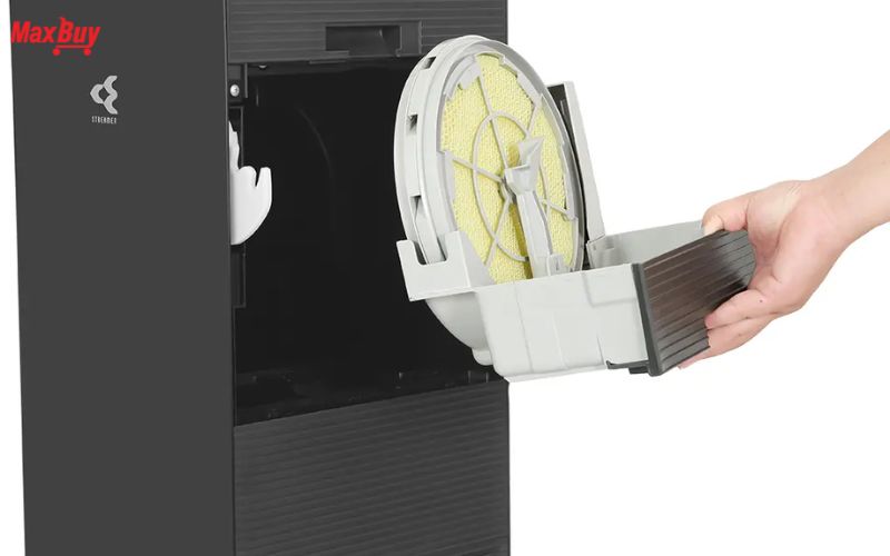 Máy sử dụng cơ chế bay hơi nước tự nhiên thay vì phun sương siêu âm. Phương pháp này giúp độ ẩm phân bổ ổn định, không tạo hơi nước đọng trên bề mặt đồ nội thất, đồng thời hạn chế nguy cơ phát tán vi khuẩn trong không khí.