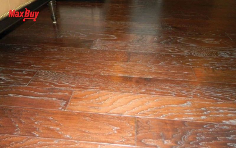 Nếu sàn gỗ tiếp xúc quá lâu với nước hoặc độ ẩm vượt mức chịu đựng, lớp bề mặt laminate có thể bị bong hoặc nứt. Điều này thường xảy ra với những loại sàn gỗ có chất lượng trung bình hoặc kém. Lúc này, bề mặt sàn trở nên sần sùi, màu sắc có thể bị loang lổ và khi dùng tay chạm vào sẽ thấy lớp phủ dễ bong ra. Ở mức độ nghiêm trọng hơn, cốt gỗ bên trong cũng có thể bị mục, làm giảm hoàn toàn độ bền của sàn.