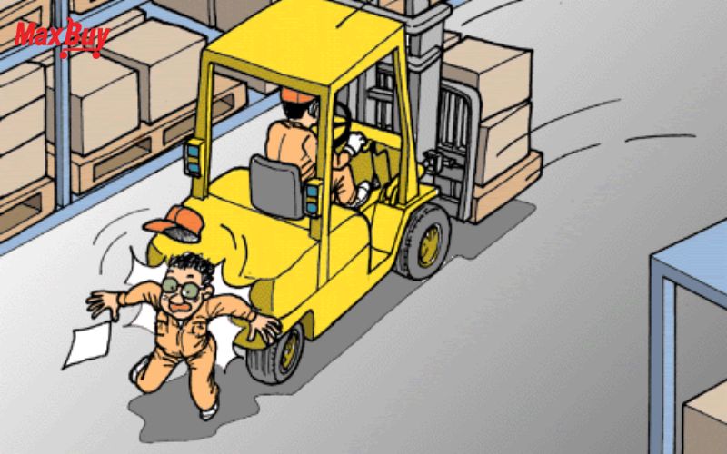 Hậu quả của dạng tai nạn này có thể rất nghiêm trọng, đặc biệt trong không gian hẹp. Giải pháp hiệu quả là thiết lập lối đi riêng cho xe nâng và người đi bộ, sử dụng gương cầu, còi cảnh báo và đèn tín hiệu. Đồng thời, cần đào tạo ý thức an toàn cho toàn bộ nhân sự trong khu vực làm việc.