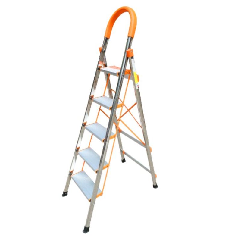 Thang có 5 bậc với chiều cao tính từ chân thang tới mặt bậc trên cùng là 1.2 m. Chiều cao tính tới tay vịn là 1.65 m. Đây là mức chiều cao phù hợp sử dụng ở chiều cao khoảng 2,5 -3m trong các gia đình, văn phòng hay những nơi có diện tích nhỏ, không thể sử dụng được các loại thang lớn, cồng kềnh như tiệm tạp hóa, nhà kho,…
