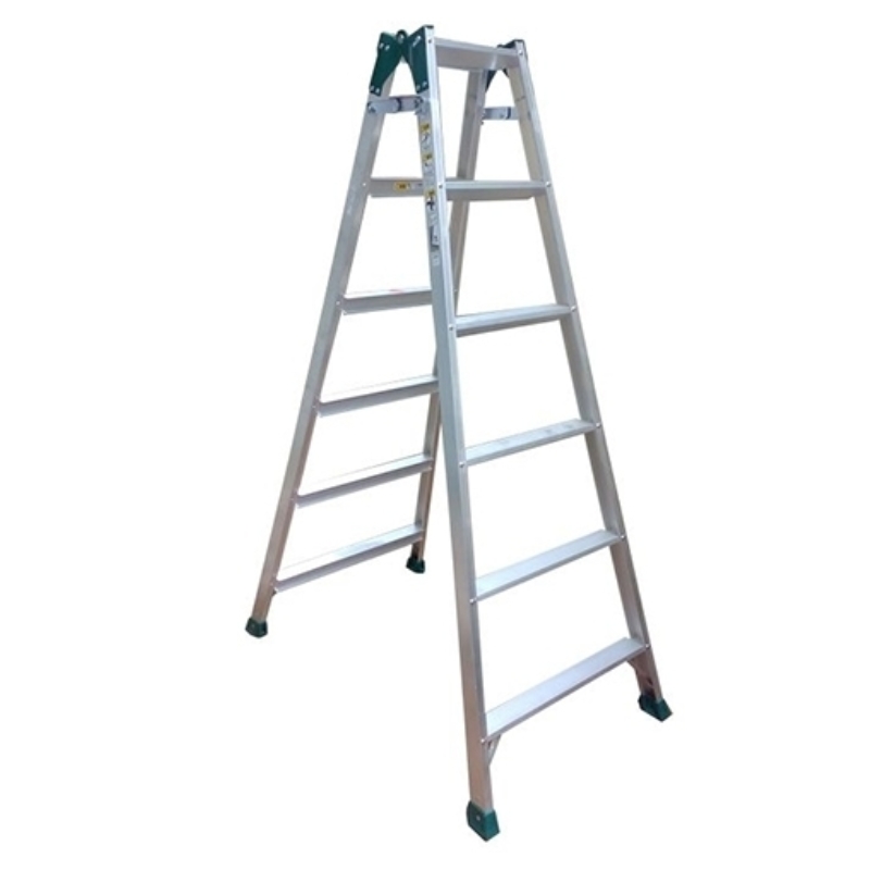 – Thang gấp 2 đoạn mỗi bên 6 bậc khi gấp thành hình chữ A. Thang cũng có thể duỗi thẳng thành dạng chữ I 12 bậc